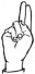 На ћирилици написано МАРИНА КОЈОВИЋ састоји се из 13 слова [?]. Исписано ћириличном једноручном азбуком за глувонеме:
